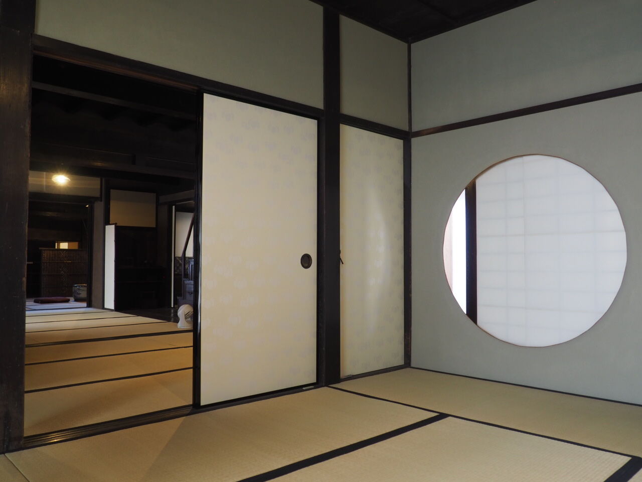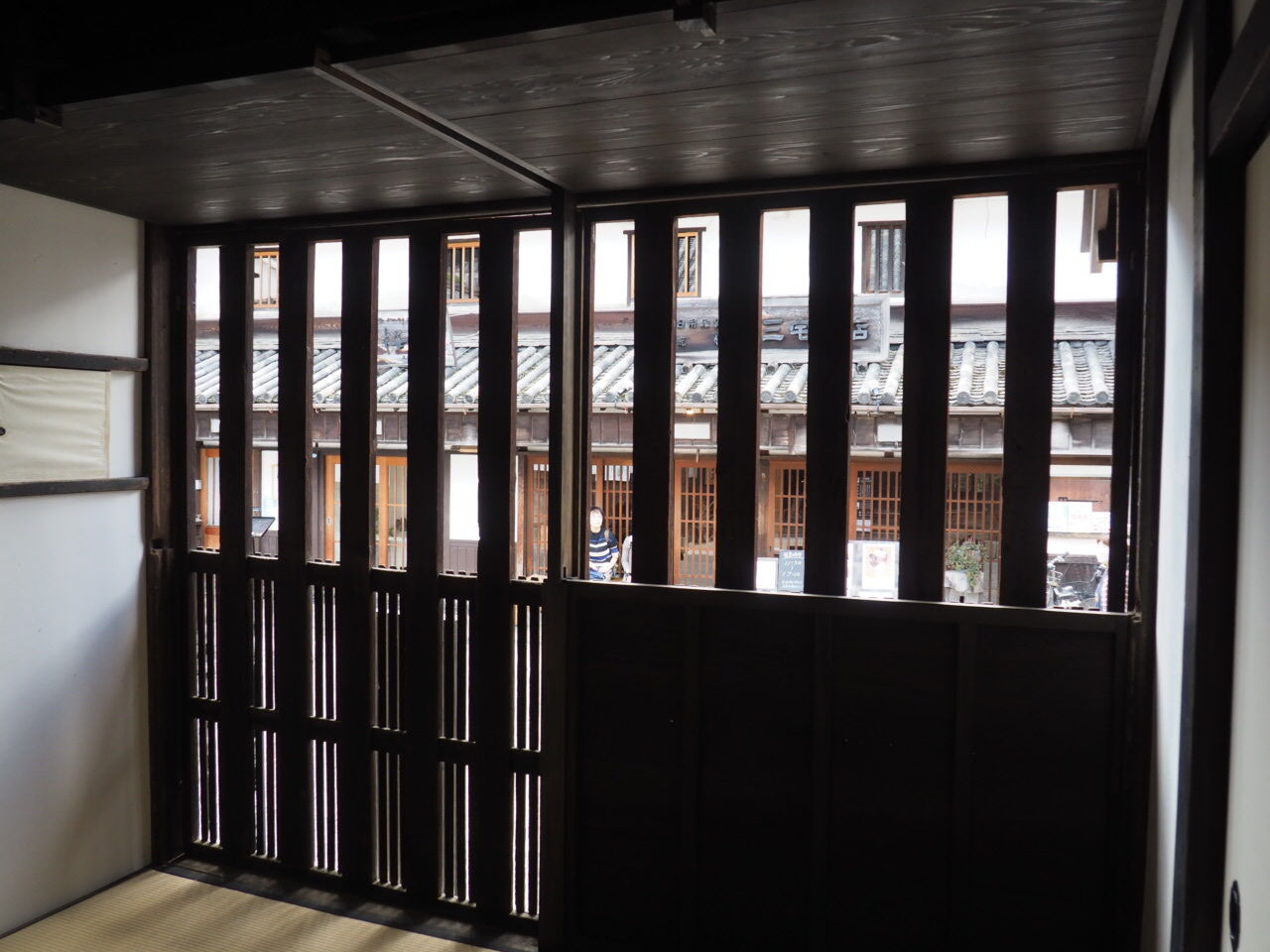 正面2階の倉敷窓には、防火用土扉がついていて、