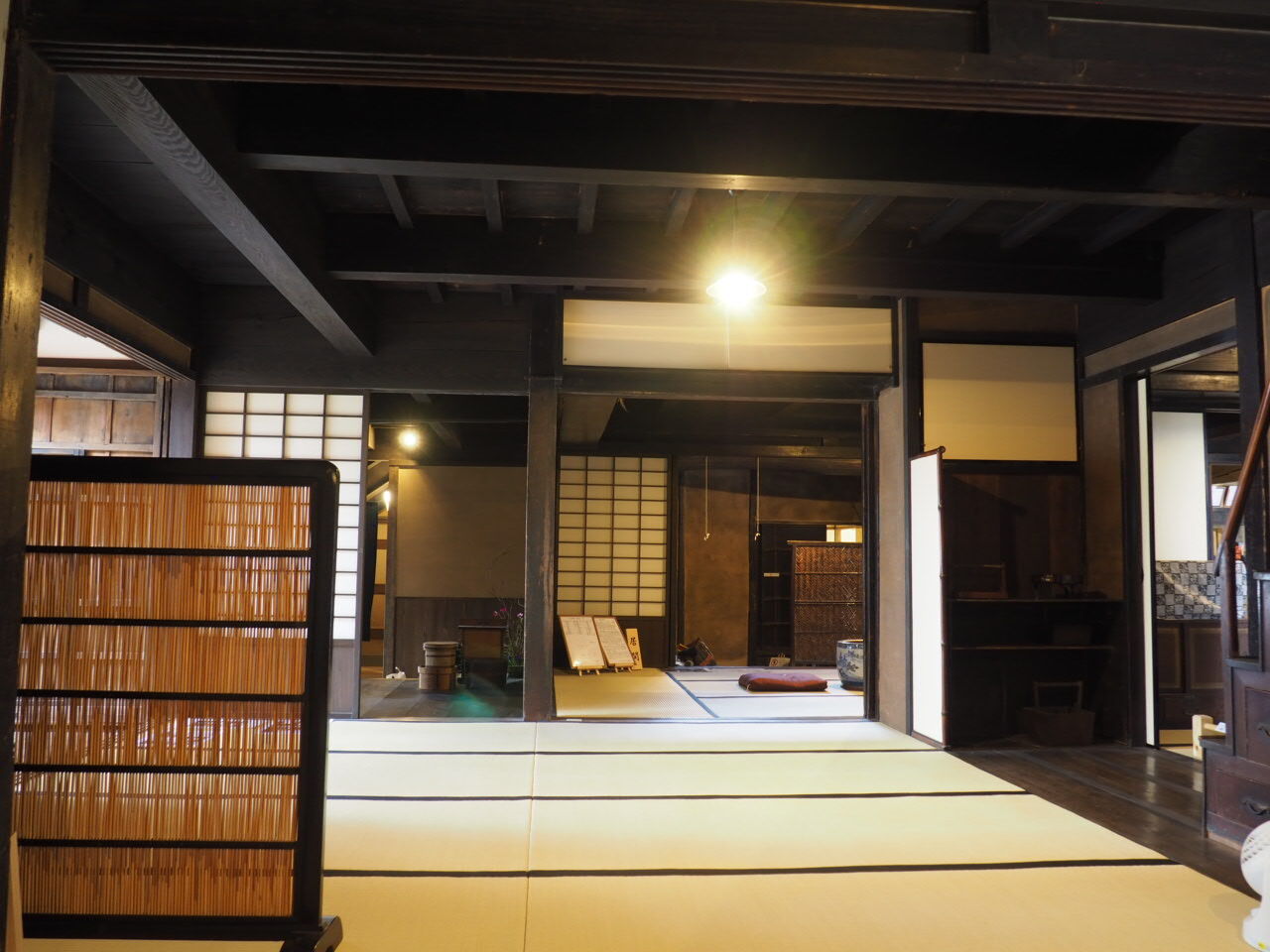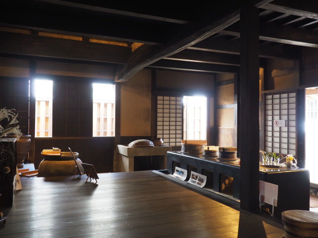 入口の土間では、大黒柱に支えられた登り梁を見ることが出来ます